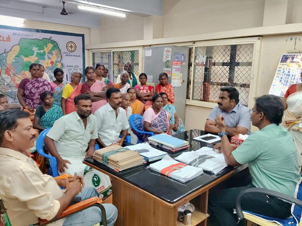 வாடிப்பட்டி ஒன்றிய குழு தமிழ்நாடு விவசாயி கள் சங்கம் சார்பாக ஏழை எளியோருக்கு குருவித்துறை, ராயபுரம், சோழவந்தான் உள்பட்ட பகுதிகளில் இலவச வீட்டுமனை பட்டா வழங்க கோரியும், கண்ணுடையாள்புரம் கிராமம் அருகே விவசாயிகள் பயன்பெறும் வகையில் பாதை ஆக்கிரமிப்பை அகற்றி சாலை அமைக்க கோரியும் வாடிப்பட்டி தாலுகா அலுவலகத்தில் ஆர்ப்பாட்டம் மற்றும் குடியேறும் போராட்டம் நடந்தது.