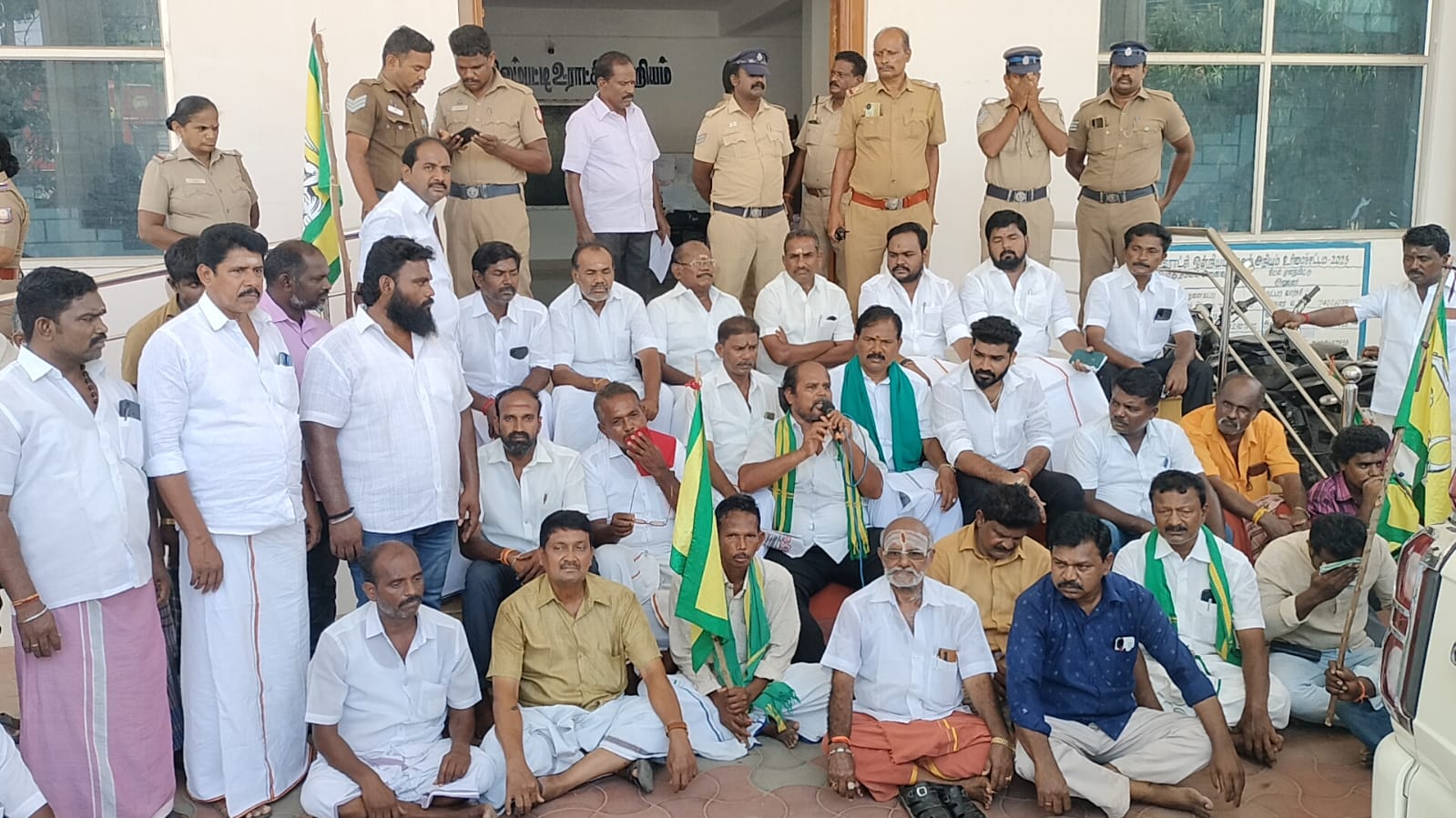 இந்த போராட்டத்திற்கு அதிமுகவின் இபிஎஸ் அணி, அதிமுக ஒபிஎஸ் அணி நிர்வாகிகள், பார்வட் ப்ளாக் நிர்வாகிகள், மார்க்சிஸ்ட் கம்யூனிஸ்ட் கட்சி நிர்வாகிகளும் விவசாயிகளுக்கு ஆதரவாக போராட்டத்தில் கலந்து கொண்டனர்.,