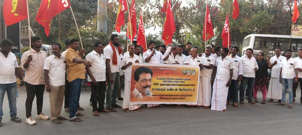 நாடு முழுவதும் மத்திய அரசை கண்டித்து தொழிலாளர் விரோத சட்டத்தின் திரும்ப பெற வலியுறுத்தி அகில இந்திய பார்வர்டு பிளாக் கட்சியின் சார்பில் கண்டன ஆர்ப்பாட்டங்கள் நடைபெற்று வருகின்ற சூழலில்,