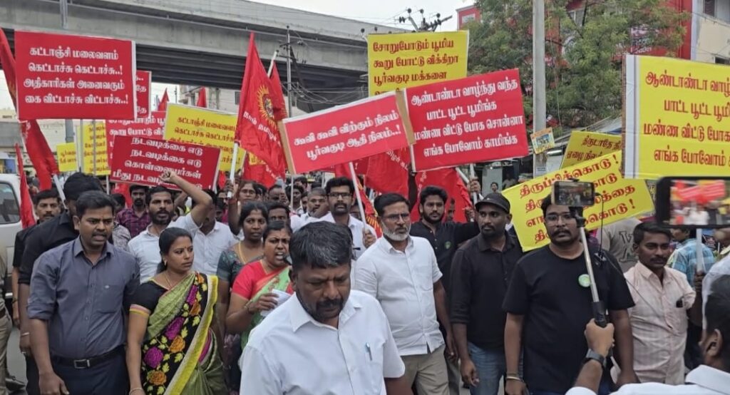 கோவை, பெரியநாயக்கன் பாளையம் அடுத்து உள்ள கூடலூர் கவுண்டம்பாளையம் நகராட்சி செல்வபுரம் கட்டாஞ்சி மலைப் பகுதியில் நீண்ட நாட்களாகவே மணல் கொள்ளை நடைபெற்று வருவதாகவும், அங்கு உள்ள கோபனாரி பகுதியில் பூர்வ பழங்குடியின மக்களின் நிலம் அபகரிக்கப்பட்டு உள்ளதாகவும், இது குறித்து நாம் தமிழர் கட்சி சார்பில் மாவட்ட ஆட்சியர் உள்ளிட்ட அனைவரிடமும் புகார் மனு அளிக்கப்பட்டு உள்ளதாகவும், அதன் மீது உரிய நடவடிக்கை எடுக்கப்படாததால், பெரியநாயக்கன் பாளையம் பேருந்து நிறுத்தம் அருகே நாம் தமிழர் கட்சியினர் திடீர் ஆர்ப்பாட்டம் நடத்தினர்.