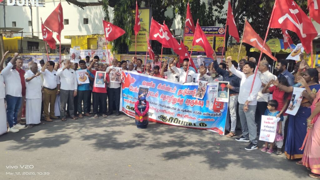 இதுகுறித்து பேட்டியளித்த இந்த அமைப்பின் பொருளாளர் பத்மநாபன், அமெரிக்காவும் இஸ்ரேலும் சேர்ந்து இறையாண்மை மிக்க ஈரான் நாட்டின் மீது கொடுமையான போரை தொடுத்து வருகிறது. இந்தியாவை பாதுகாக்க வேண்டும் என்று சொன்னால் மிக அத்தியாவசிய தேவைகளில் ஒன்றான எரிவாயுவை இருப்பு வைத்துக் கொள்ள வேண்டும் என்றும் ஆனால் இந்திய நாட்டை பாதுகாக்க வேண்டும் என்ற உணர்வு இல்லாமல் மத்திய அமைச்சர்கள் வணிக சிலிண்டர்கள் தட்டுப்பாடு இல்லை என்று பொய் கூறுகிறார்கள் என்றார்.