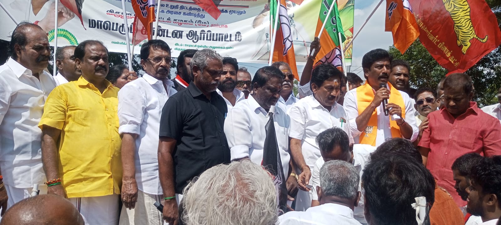 மேலும் பாரதிய ஜனதா கட்சியின் மாவட்டத் தலைவர் பாண்டுரங்கன், அமமுக நகரச் செயலாளர் கே.நாகராஜ், விருதுநகர் கிழக்கு ஒன்றியச் செயலாளர் வழக்கறிஞர் கோ.சி.மாரியப்பன், நகரத் துணைச் செயலாளர் ஞானசேகரன், ஒன்றியத் துணைச் செயலாளர் கண்ணாயிரம் உள்ளிட்ட பலர் இந்த ஆர்ப்பாட்டத்தில் முன்னிலை வகித்தனர்.