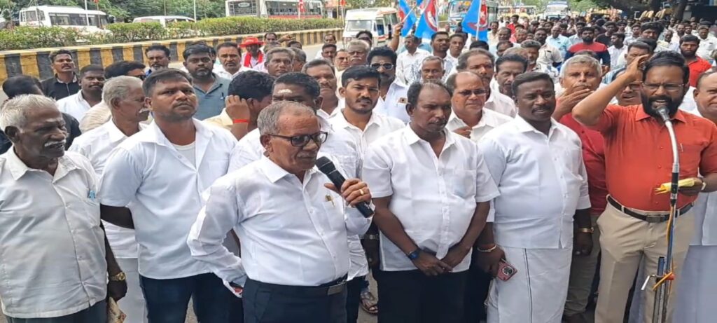 தமிழ் மீனவர் விடுதலை வேங்கைகளும் மார்க்சிஸ்ட் கம்யூனிஸ்ட் கட்சி சார்பில் சுதேசி மில் அருகே இன்று கண்டன ஆர்ப்பாட்டம் நடைபெற்றது.