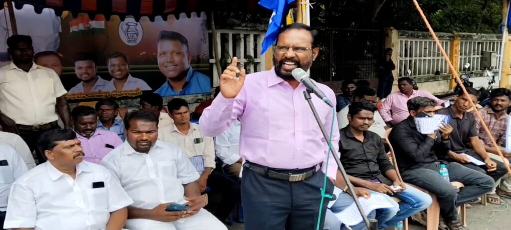 புதுச்சேரி ஆதிதிராவிடர் நலம் மற்றும் பழங்குடியினர் மேம்பாட்டு வரைநிலை கழகத்தில் பணிநீக்கம் செய்யப்பட்ட 21-தலித் ஊழியர்களை மீண்டும் பணியில் அமர்த்திட உத்தரவிட்ட உயர் நீதிமன்ற தீர்ப்பை அமல் படுத்தாத புதுச்சேரி அரசை கண்டித்து சமூக ஜனநாயக கூட்டமைப்பு சார்பில் கண்டன ஆர்ப்பாட்டம் நடைபெற்றது.