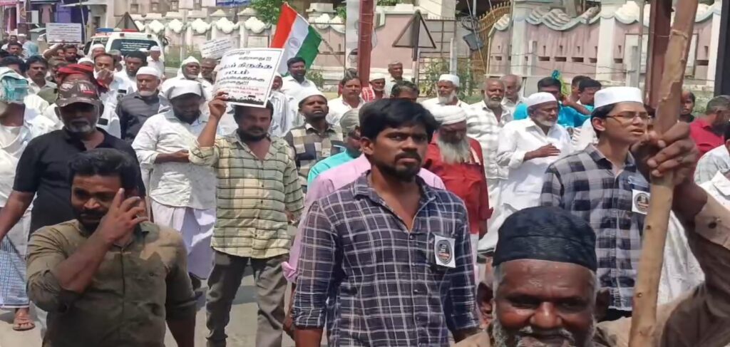 வக்பு வாரிய சட்ட திருத்த மசோதாவிற்கு எதிர்ப்பு தெரிவித்து பழனியில் அனைத்து இஸ்லாமிய சமுதாயம் சார்பில் 1000க்கும் மேற்பட்ட இஸ்லாமியர்கள் கலந்து கொண்டு பிரம்மாண்ட பேரணியில் தேசிய கொடியுடன் சென்று, மற்றும் ஆர்பாட்டம் நடைபெற்று வருகிறது.