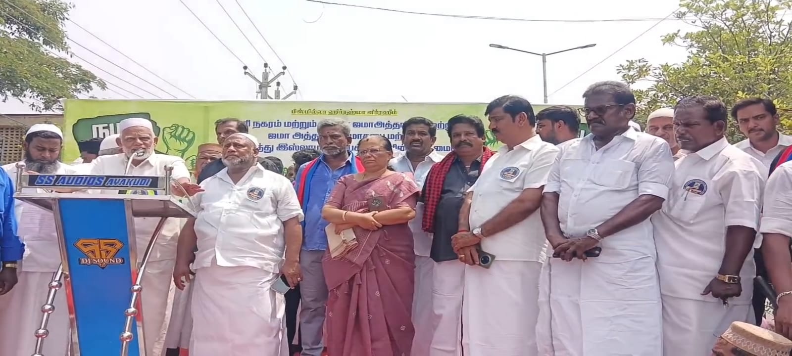 இதில் ஒன்றிய அரசு வக்பு திருத்த சட்ட மசோதாவிற்கு எதிர்ப்பு தெரிவித்தும் வக்பு திருத்த சட்ட மசோதா மத சுதந்திரத்திற்கு எதிரானது , வக்பு திருத்த சட்ட மசோதாவை ஏற்க மாட்டோம் , வக்பு திருத்த சட்ட அரசியல் அமைப்பிற்கு எதிரானது என்றும் ,உள்ளிட்ட பல்வேறு பதாகைகள் ஏந்தியபடி கோஷங்கள் எழுப்பப்பட்டு ஆர்ப்பாட்டம் நடைபெற்றது. இதில் திமுக, கம்யூனிஸ்ட் கட்சி விடுதலை சிறுத்தை கட்சி காங்கிரஸ் கட்சி அனைத்து சமுதாய இஸ்லாமியர் கூட்டமைப்பு அனைத்து இயக்கங்கள் சார்பில் கலந்து கொண்டனர்.