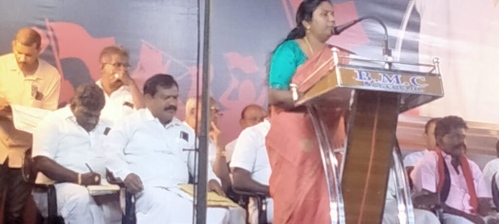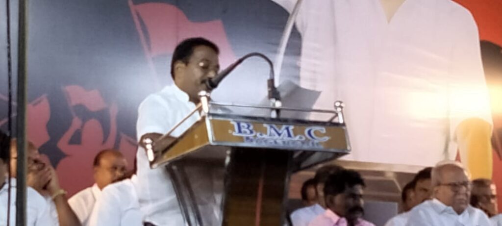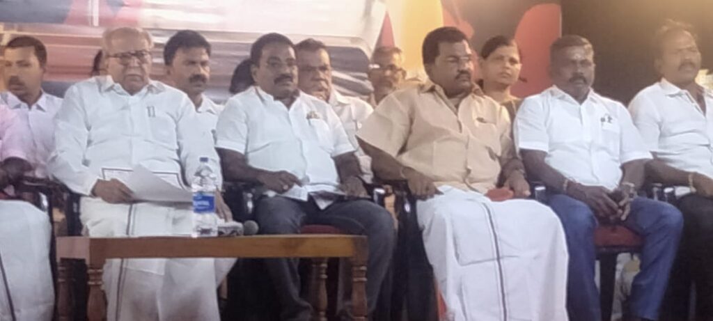 கண்டன பொதுக்கூட்டத்திற்கு சிறப்பு பேச்சாளராக அகில இந்திய தொ.மு.ச போரவை செயலாளர் நாடாளுமன்ற மேலவை உறுப்பினருமான சண்முகம் பங்கேற்றார்.