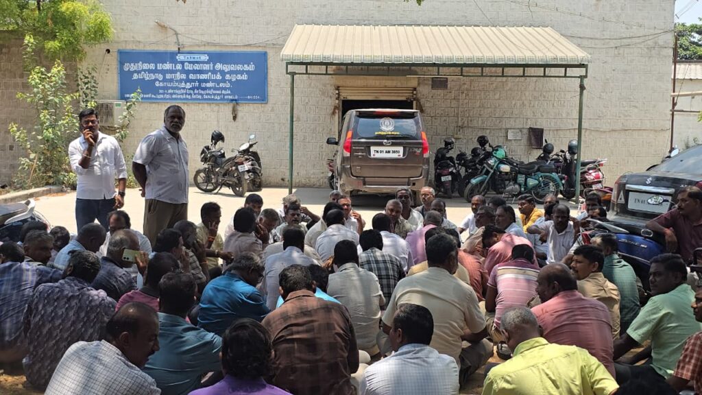 பல்வேறு கோரிக்கைகளை வலியுறுத்தி டாஸ்மாக் அனைத்து தொழிற்சங்க கூட்டு நடவடிக்கை குழுவினர் பீளமேடு பகுதியில் உள்ள வாணிப கழக அலுவலகத்தில் போராட்டம் மேற்கொண்டனர்.