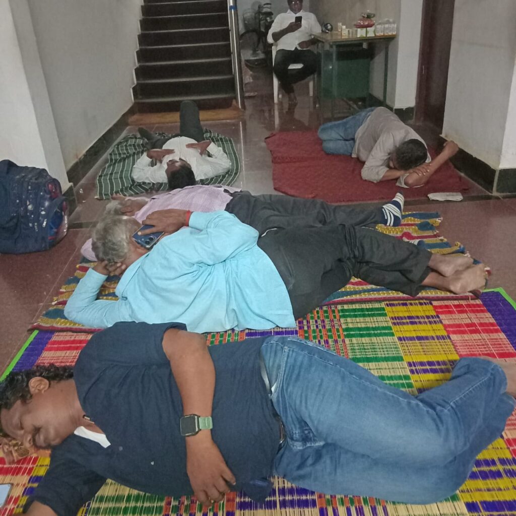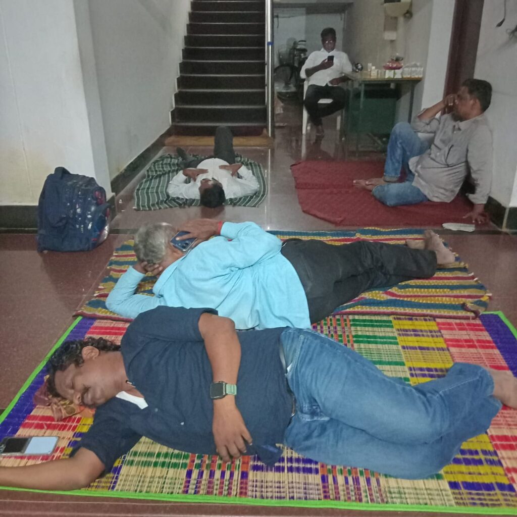 எனவே காமராஜர் பல்கலைக்கழக ஆசிரியர் சங்கத்தினர் தொடர் உள்ளிருப்பு போராட்டத்தை துவக்கியுள்ளோம். பல்கலைக்கழக ஆசிரியர் சங்கத்தின் கோரிக்கைகளை நிறைவேற்றும் வரை இந்த தொடர் உள்ளிருப்பு போராட்டம் கோரிக்கை நிறைவேற்றும் வரை தொடரும் என கூறி பேராசிரியர்கள் இரவிலும் போராட்டத்தை தொடர்கின்றனர்.