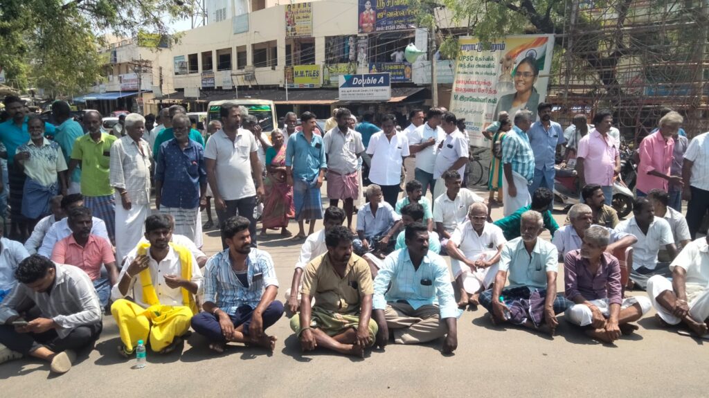 ஆனால் திடீரென்று இன்று காலை 11 மணி முதல் ஒரு தரப்பினர் திடீரென்று வாடிப்பட்டி காவல் நிலையம் முன்பாக மதுரை திண்டுக்கல் நகர்புறச் சாலை மற்றும் கச்சை கட்டி சாலைகளில் சாலை மறியல் போராட்டம் செய்தனர். அந்தப் போராட்டத்தில் அரசு புறம்போக்கு இடத்தில் கோவில் கட்டுவதை தடுத்து நிறுத்து என்று கோஷமிட்டனர். தகவல் அறிந்த சமயநல்லூர் போலீஸ் துணை சூப்பிரண்டு ஆனந்தராஜ்,