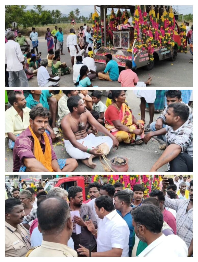 இந்த நிலையில் இன்று உடல்நலக்குறைவு காரணமாக உயிரிழந்த அதே ஊரைச் சேர்ந்த தங்கராஜ் என்பவரது உடலை ஆம்புலென்ஸ் வாகனத்திலேயே வைத்து இடையபட்டி விலக்கு பகுதியில் பொதுமக்கள் திடீர் சாலை மறியலில் ஈடுபட்டதால் பரபரப்பு ஏற்பட்டது.