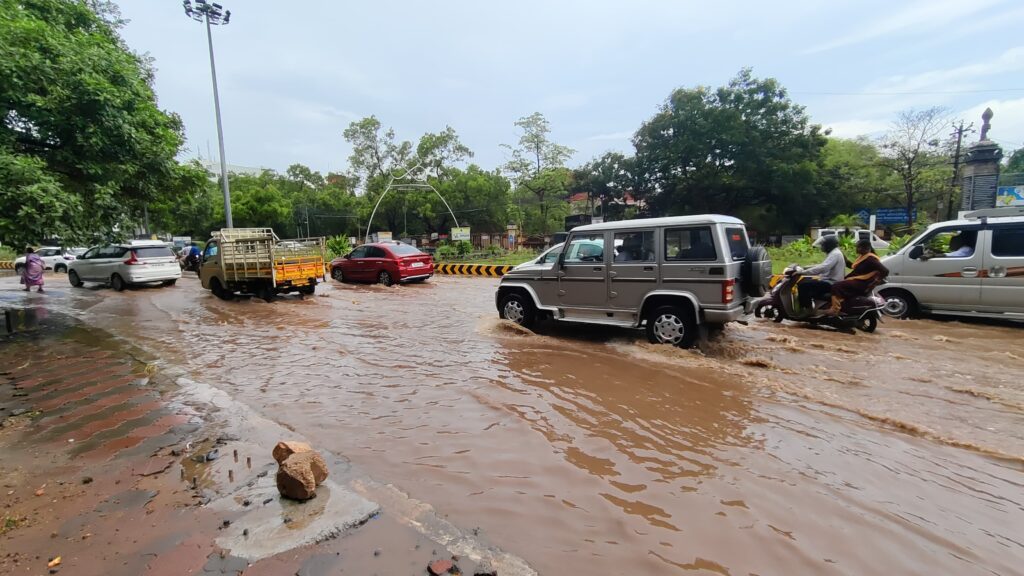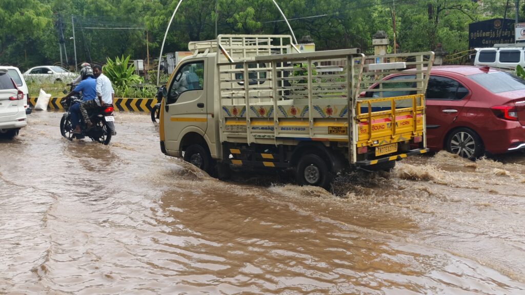 கோவையில் கனமழை காரணமாக லங்கா கார்னர் மற்றும் ரயில் நிலையம் பகுதியில் மழைநீர் வெள்ளம் போல் தேங்கியதால் பொதுமக்கள் அவதிபட்டு வருகின்றனர்.