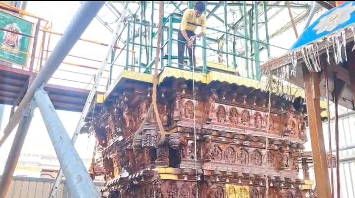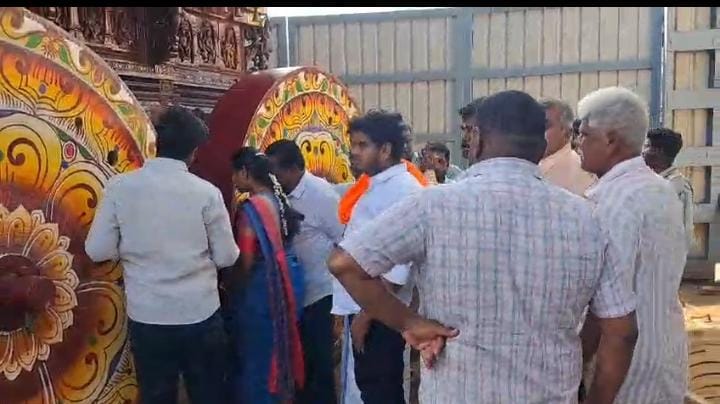 இந்நிலையில் தேரின் ஆதார் கட்டை வளம் இல்லாமல் இருப்பதால் இந்த வருடம் தேர் திருவீதி உலா நடைபெறாது என தெரிவிக்கப்பட்டது இதனை அடுத்து இந்தியா உறுப்பினர் மற்றும் உள்ளூர் பொதுமக்கள் ஒன்றிணைந்து கண்டிப்பாக தேர் திருவிழா நடத்த வேண்டும் என கோவில் அதிகாரியிடம் முறையிட்டனர்.