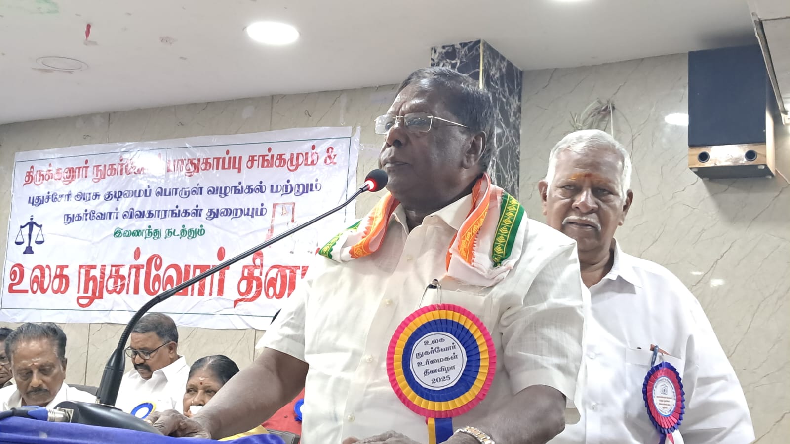 நுகர்வோர் பாதுகாப்பு சங்கத் தலைவர் முத்துரங்கம் முன்னிலையில் நடைபெற்ற நிகழ்வில் முன்னாள் முதலமைச்சர் நாராயணசாமி சிறப்பு விருந்தினராக கலந்து கொண்டார்.