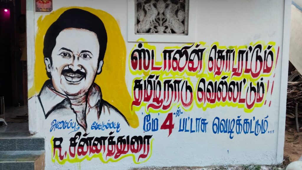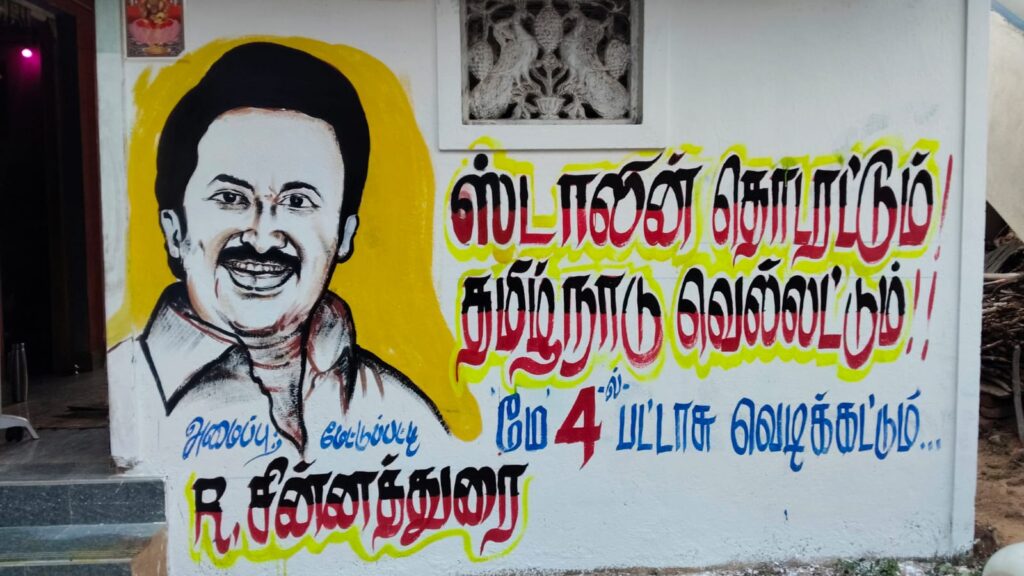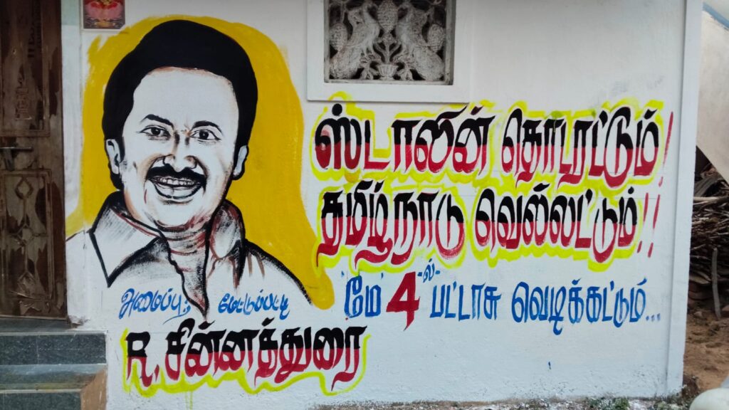 இதையெல்லாம் தாண்டி புதுக்கோட்டையில் உள்ள திமுக பிரமுகரான மேட்டுப்பட்டி சின்னத்துரை என்பவர் திமுக தலைவர் மு.க.ஸ்டாலின் பிறந்த நாளாக இருந்தாலும் சரி துணை முதல்வர் உதயநிதி ஸ்டாலின் பிறந்த நாளாக இருந்தாலும் சரி புதுக்கோட்டையில் பெரிய பெரிய இடங்களில் சாலை ஓரங்களில் அவர்களுக்கு வாழ்த்து தெரிவித்து விளம்பரங்களை வரைந்து வைத்திருப்பார். திமுகவிற்கு அனுதாபியாக இருக்கும் இவரது விளம்பரங்கள் புதுக்கோட்டை மாவட்டத்தில் பிரபலமாக பேசப்படும். அந்த அளவுக்கு பிரமாண்டமாக எழுதி வைத்திருப்பார். இந்த நிலையில் தான் இப்போது சட்டமன்ற பொது தேர்தல் தேதி அறிவிக்கப்பட்டு விட்டது நாம் தமிழர் கட்சியை தவிர மற்ற எந்த கட்சியிலும் அதிகாரப்பூர்வமாக இதுவரை வேட்பாளர் என்று யாரையும் அறிவிக்கவில்லை. இன்று வரை திமுகவிலும் அதுதான் நிலை. விருப்பமனு கொடுத்தவர்களிடம் தலைமை இப்போதுதான் நேர்காணல் நடத்தி முடித்து இருக்கிறது.