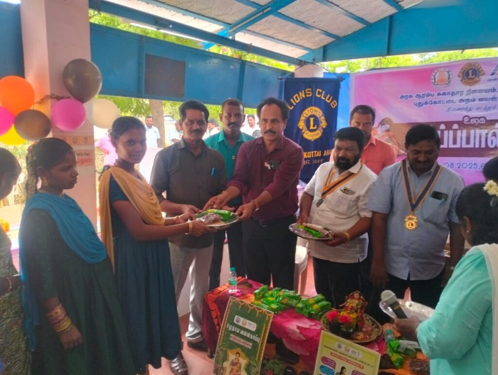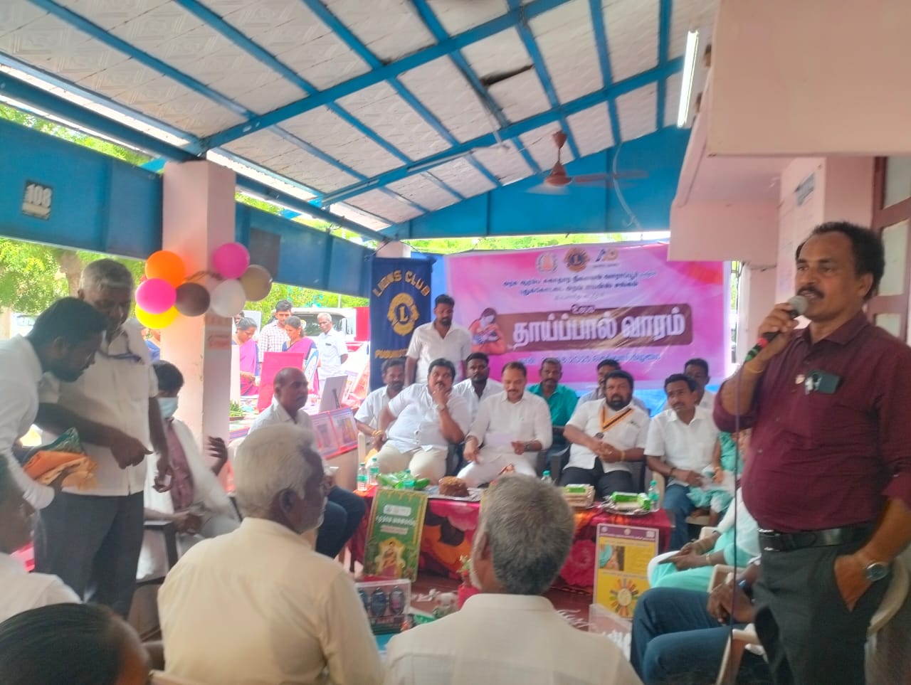 புதுக்கோட்டை அறம் லயன்ஸ் சங்கத்தின் சார்பில் உலக தாய்ப்பால் வாரம் விழா வாராப்பூர் அரசினர் ஆரம்ப சுகாதார மையத்தில் இன்று 5.8.25 காலை 11.30 மணிக்கு நடைபெற்றது. சங்கத்தின் தலைவர் Ln. K. செல்லையா அவர்கள் சுமார் 100 கர்பினி பெண்களுக்கு 7500 மதிப்புள்ள ஊட்டச்சத்து பொருட்களை வழங்கி சிறப்பித்தார். சட்டமன்ற உறுப்பினர் மற்றும் சங்கத்தின் நிர்வாகிகள் கலந்துகொண்டனர்