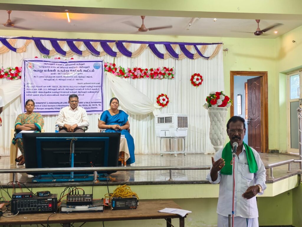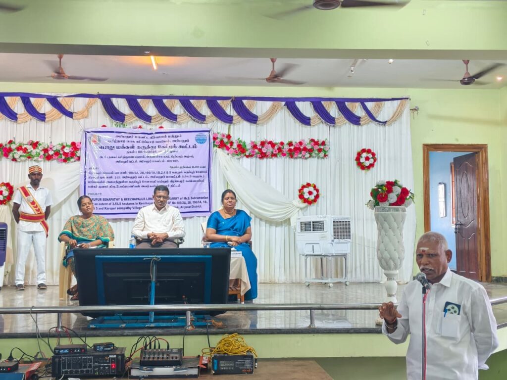 அரியலூர் மாவட்டம் ,கீழப்பழுவூர் கிராமம் புல எண்.189/2A, 2B, 190/1A, 1B, 2, 4 & 5 மற்றும் கருப்பூர் சேனாபதி கிராமம் புல எண்.31/1 அரியலூர் வட்டம், அரியலூர் மாவட்டம் 3.54.5 ஹெக்டேர் பரப்பளவில் அமைந்துள்ள கருப்பூர் சேனாபதி மற்றும் கீழப்பழுவூர் சுண்ணாம்புக் கன்கர் குவாரி திரு.எஸ்.சுப்ரமணியன் r அவர்களின் குவாரி திட்டம் தொடர்பாக பொதுமக்கள் கருத்துக்கேட்புக் கூட்டம் கீழப்பழுவூர் கிராமம், கீழப்பழுவூர் தனலெட்சுமி திருமண மண்டபத்தில் மாவட்ட ஆட்சியர் பொ.இரத்தினசாமி தலைமையில் நடைபெற்றது.