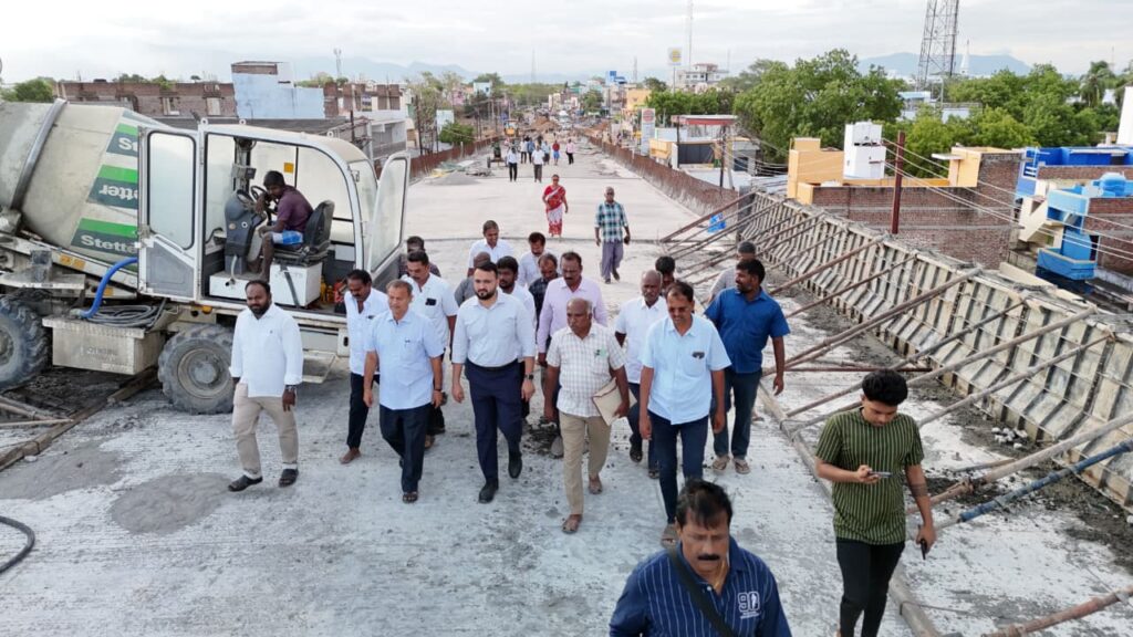 மேலும் இந்தாண்டு 2025 இறுதிக்குள் பொதுமக்கள் பயன்பாட்டிற்க்கு கொண்டு வர வேண்டும் என மேம்பால பணியை மேற்கொள்ளும் ஒப்பந்தார்களிடம் வலியுறுத்தினர். இந்த ஆய்வின் போது மாநகராட்சி ஆணையாளர் சரவணன் மற்றும் ஊராட்சி ஒன்றிய அதிகாரிகள் கலந்து கொண்டனர்.