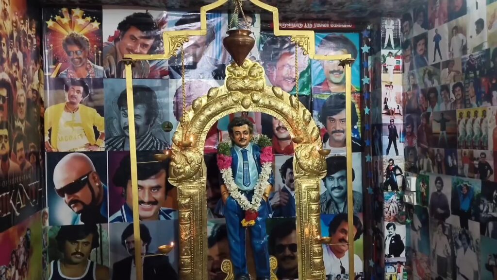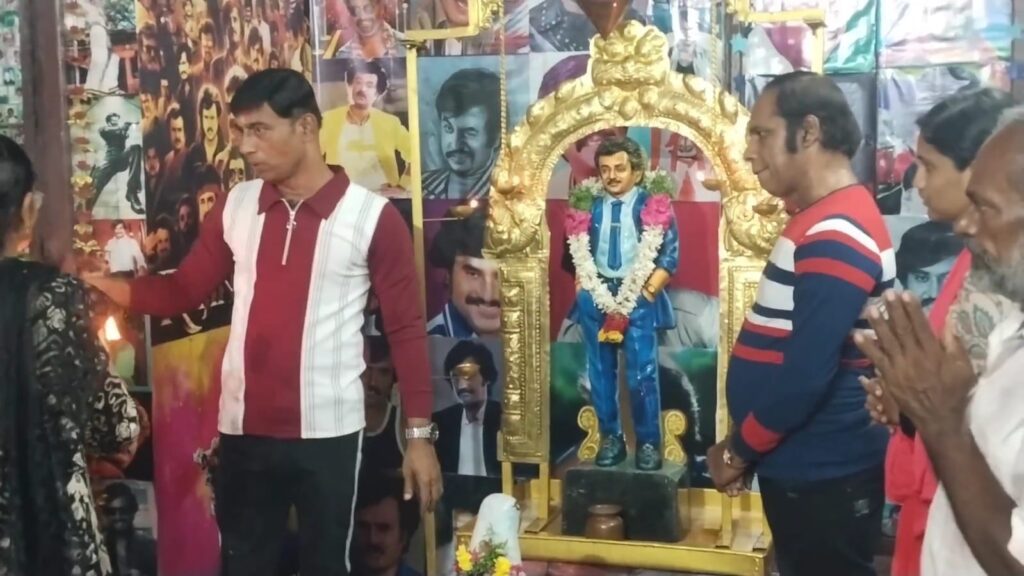 தற்பொழுது கூலி படம் 100 நாடுகளில் வெளியிடப்பட்டுள்ளது 47 ஆண்டுகளாக அசைக்க முடியாத சூப்பர் ஸ்டார் பட்டத்தை விட்டுக் கொடுக்காமல் இருக்கிற அவருடைய கடின உழைப்பு தான் காரணம். அவருக்கு பெருமை சேர்க்கும் வகையில் இரண்டு சிலைகள் வைத்து தினந்தோறும் வழிபட்டு வருகிறோம். 5000க்கும் மேற்பட்ட படங்களை எடுத்து 360 முறையில் ஒட்டி உள்ளம் கடந்த இரண்டு மாதங்களாக இந்த வேலை நடைபெற்று ரஜினி ரசிகர்கள் யார் வந்து பார்த்தாலும் வித்தியாசமான முறையில் அமைக்கப்பட்டுள்ளது.