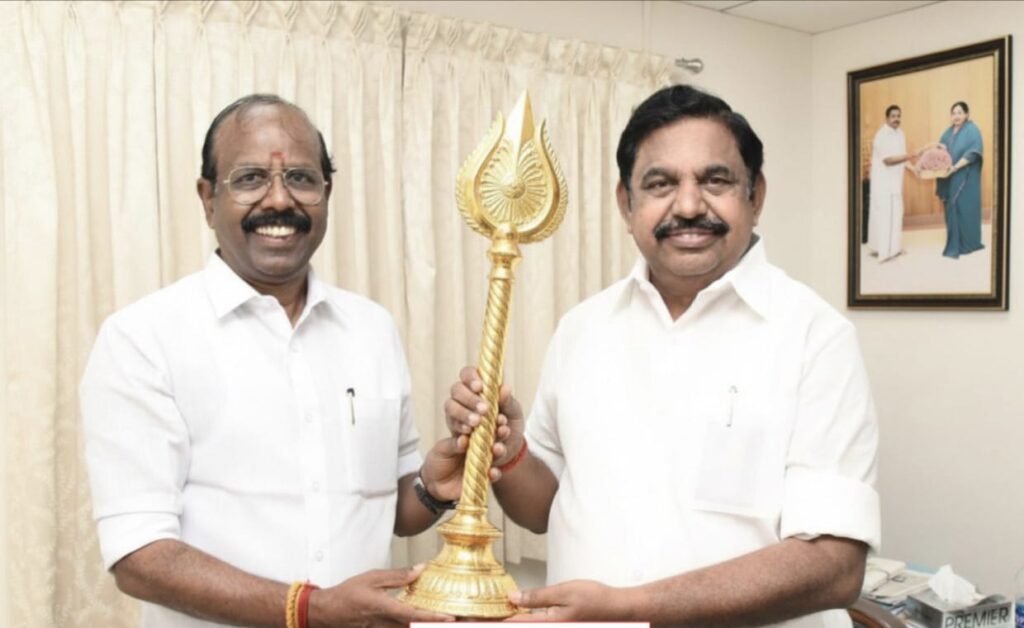 இவர் அதிமுக பொதுச்செயலாளரும் தமிழக எதிர்க்கட்சி தலைவருமான எடப்பாடியார் இல்லத்திற்கு நேரில் சென்று கந்த சஷ்டி கவசத்தை முன்னிட்டு வாழ்த்து தெரிவித்து வேல் வழங்கினார்.