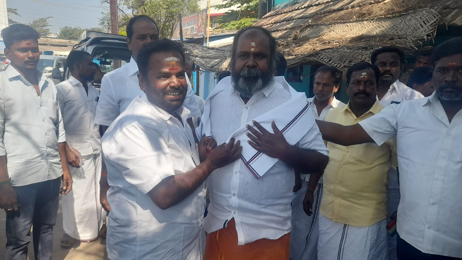 மதுரை புறநகர் மேற்கு மாவட்டம் வாடிப்பட்டி தெற்கு ஒன்றியத்துக்குட்பட்ட கச்சிராயிருப்பு மேலக் கால் திருவேடகம் ஆகிய பகுதிகளில் பூத்கமிட்டி நிர்வாகிகள் ஆலோசனை கூட்டத்திற்கு வருகை தந்த முன்னாள் அமைச்சரும், சட்டமன்ற எதிர்க்கட்சி துணைத்தலைவருமான ஆர். பி. உதயகுமார் அவர்களை தென்கரை ஊராட்சி அதிமுக நிர்வாகி நாகமணி சால்வை அணிவித்து மரியாதை செய்தார். முன்னாள் எம்எல்ஏ கருப்பையா உசிலம்பட்டி துரைதன்ராஜ் மற்றும் நிர்வாகிகள் உடன் இருந்தனர்.