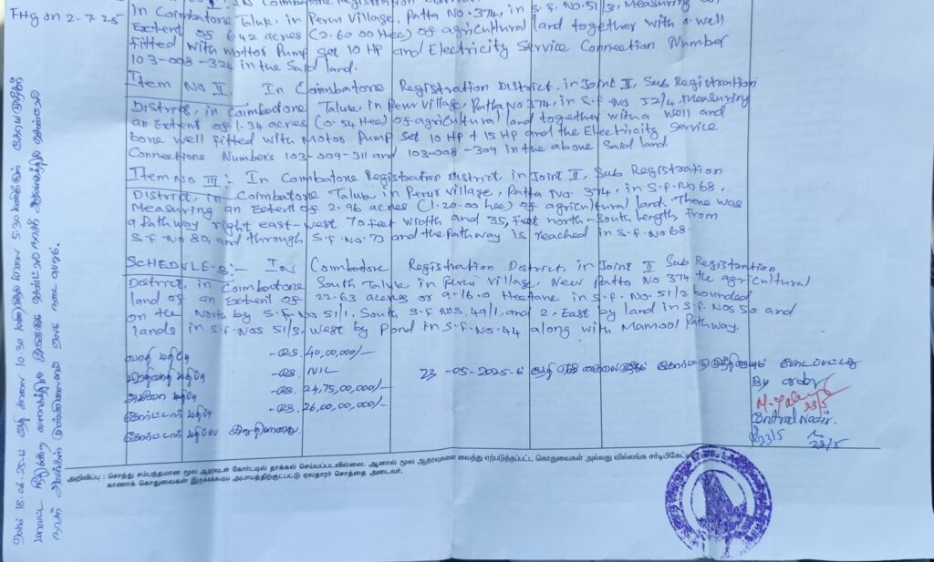 இந்த நிலங்களை கடந்த 2012-ஆம் ஆண்டில் சோமு’ஸ் ப்ராப்பர்ட்டீஸ் என்ற ரியல் எஸ்டேட் நிறுவனத்தின் உரிமையாளர் சோமுசுந்தரம் என்பவரிடம் இருந்து வாங்கியதாகக் கூறும் சுமார் 90 பேர், தற்போது தங்கள் உரிமைகளை இழக்கக் கூடிய அபாயத்தில் உள்ளதாக கோவை மாநகர காவல் ஆணையரிடம் புகார் அளித்து உள்ளனர்.