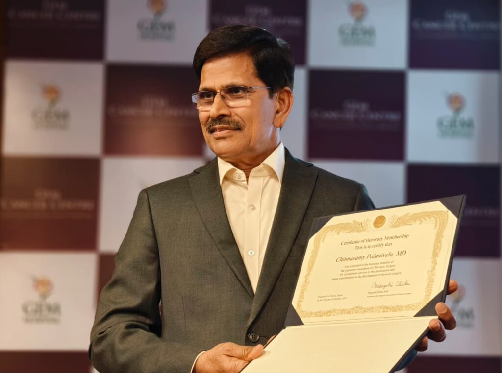 உணவுக்குழாய் புற்றுநோய்க்கு புது அறுவை சிகிச்சை உத்தியை உருவாக்கி, புரட்சி செய்ததற்காக கோவை ஜெம் மருத்துவமனையின் தலைவர் டாக்டர் சி. பழனிவேலுவை தங்களது கவுரவ உறுப்பினராக நியமித்தது ஜப்பான் தொராசிக் அறுவை சிகிச்சை சங்கம். இந்த அங்கீகாரம் அவருக்கு 23.10.2025ல் ஜப்பான் நாட்டில் இந்த சங்கத்தின் 78வது ஆண்டு மாநட்டில் வழங்கப்பட்டது.