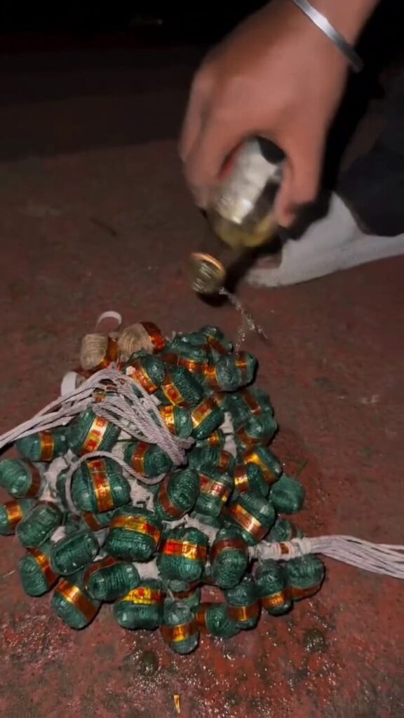 அணுகுண்டு பட்டாசுகளை பெட்ரோல் ஊற்றி வெடித்து ரீல்ஸ்..,