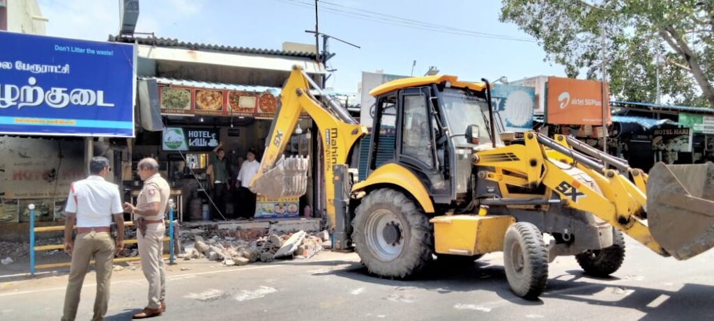 கன்னியாகுமரி தேசிய நெடுஞ்சாலை ஓரம் ஆக்கிரமிப்பு நடைபாதை பகுதியில் இருந்த திண்ணை அகற்றம் குமரி மாவட்ட காவல் கண்காணிப்பாளர் நடவடிக்கை மேற்கொண்டு வருகிறார்.