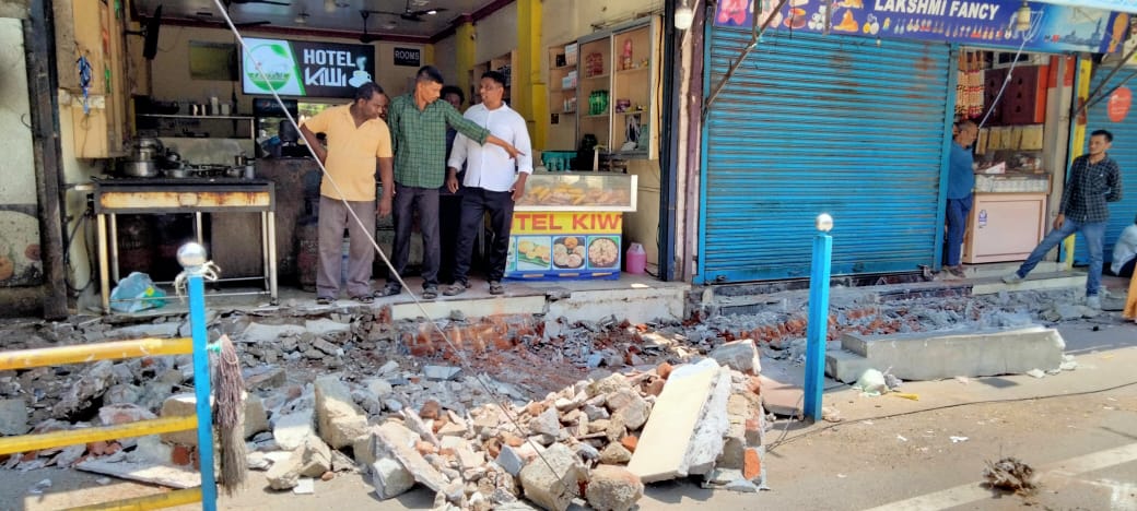 கன்னியாகுமரி தேசிய நெடுஞ்சாலை ஓரம் ஆக்கிரமிப்பு நடைபாதை பகுதியில் இருந்த திண்ணை அகற்றம் குமரி மாவட்ட காவல் கண்காணிப்பாளர் நடவடிக்கை மேற்கொண்டு வருகிறார்.