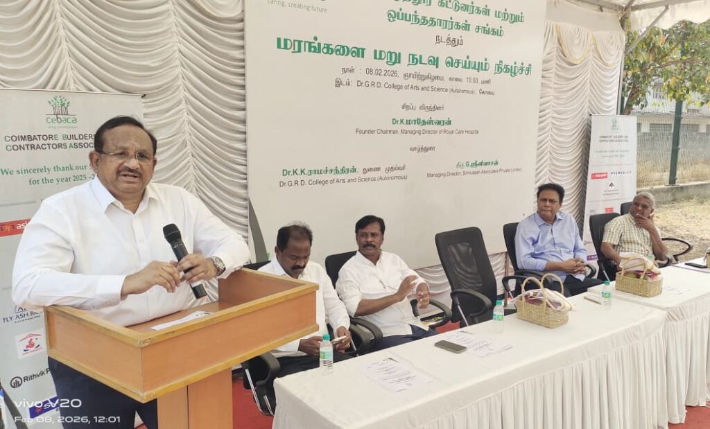 கோயமுத்தூர் கட்டுநர்கள் மற்றும் ஒப்பந்ததாரர்கள் சங்கம் (சிபாகா) சார்பில் “மரம் காப்போம் – மண் காப்போம்” என்ற நோக்கில், சுமார் 30 ஆண்டுகள் பழமையான 3 பெரிய மரங்கள் இடமாற்றம் செய்து மறு நடவு செய்யும் நிகழ்ச்சி அவினாசி சாலையில் உள்ள டாக்டர் ஜி.ஆர்.டி. கலை மற்றும் அறிவியல் கல்லூரி வளாகத்தில்