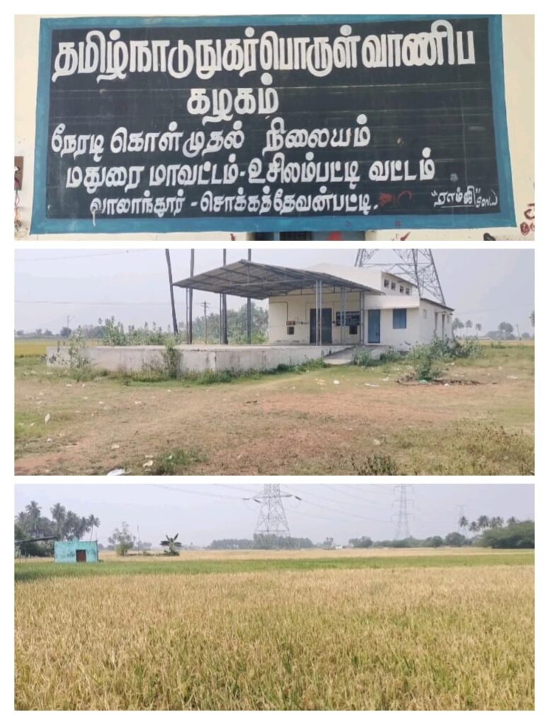 மதுரை மாவட்டம் உசிலம்பட்டி அருகே வாலாந்தூர் கிராம ஊராட்சிக்கு உட்பட்ட சொக்கதேவன்பட்டியில் சுமார் 46 லட்சம் மதிப்பீட்டில் நுகர் பொருள் வாணிப கழகத்தின் அரசு நேரடி கொள்முதல் நிலையம் கட்டிடம் 6 ஆண்டுகளுக்கு முன்பு கட்டி முடிக்கப்பட்டது .,