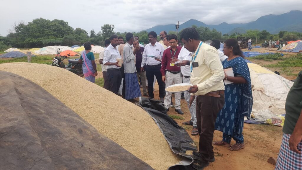 நெல்லின் ஈரப்பதம் குறித்து, மத்திய உணவுத்துறை அதிகாரிகள் ஆய்வு செய்தனர். நடப்பு நெல் கொள்முதல் சீசன், கடந்த செப்., 1ல் துவங்கியது. இந்த சீசனில், 17 சதவீதம் வரை ஈரப்பதம் உள்ள நெல்லை கொள்முதல் செய்ய, மத்திய அரசு அனுமதி அளித்துள்ளது.