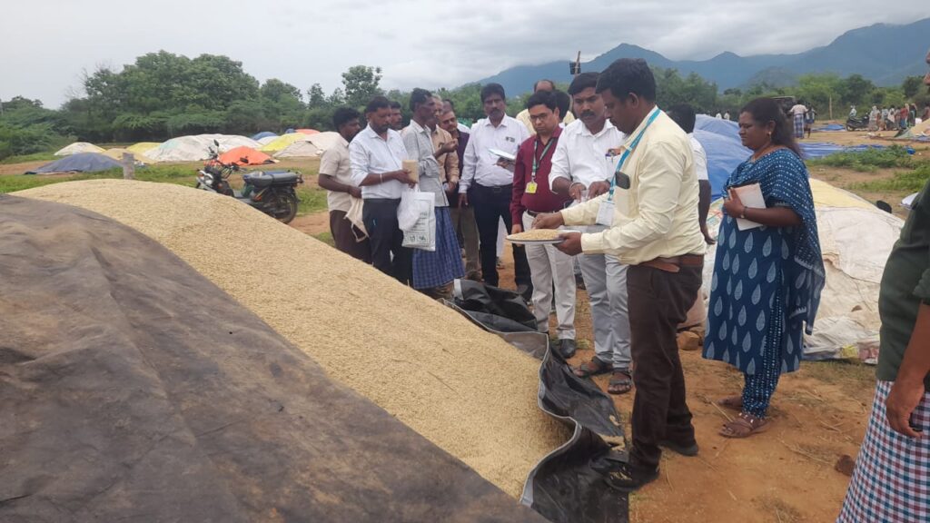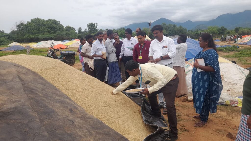 அப்போது அங்கிருந்த விவசாயிகள், மழையால் அறுவடைப் பணிகள் தாமதமாகி வருகிறது. அறுவடை செய்த நெல்லை காய வைக்க முடியவில்லை. எனவே நெல்லின் ஈரப்பதத்தை உயர்த்தித்தர வேண்டும் என கோரிக்கை விடுத்தனர்.