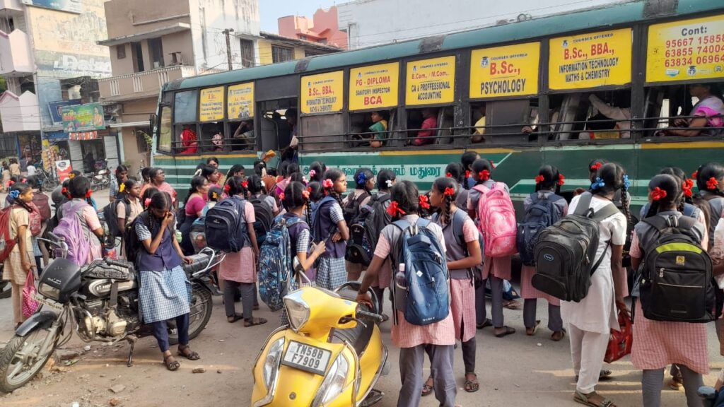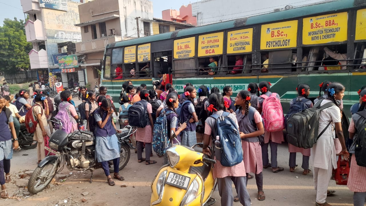 மாணவிகளின் நலன் கருதி கூடுதல் பேருந்துகளை இயக்க கோரிக்கை