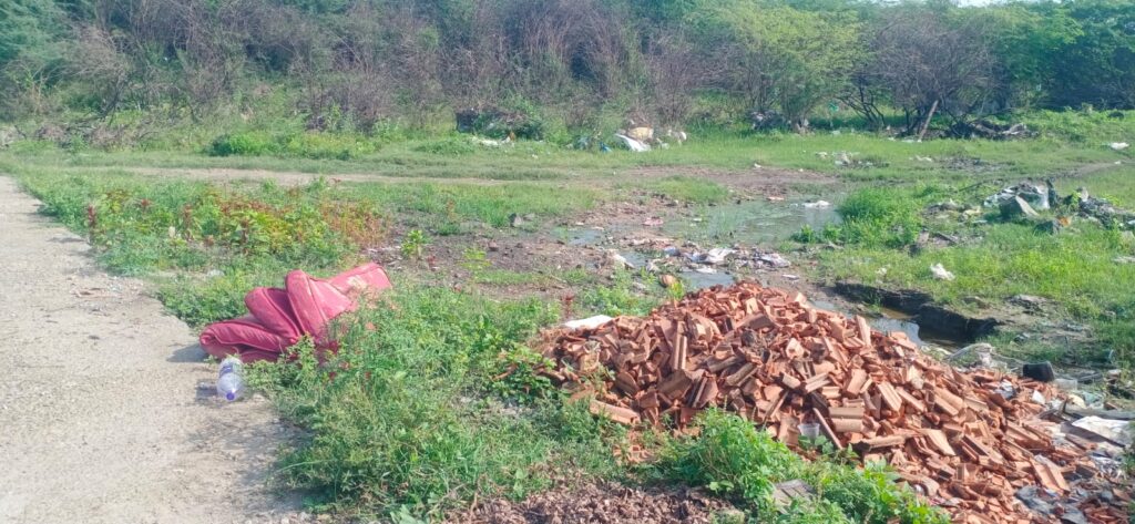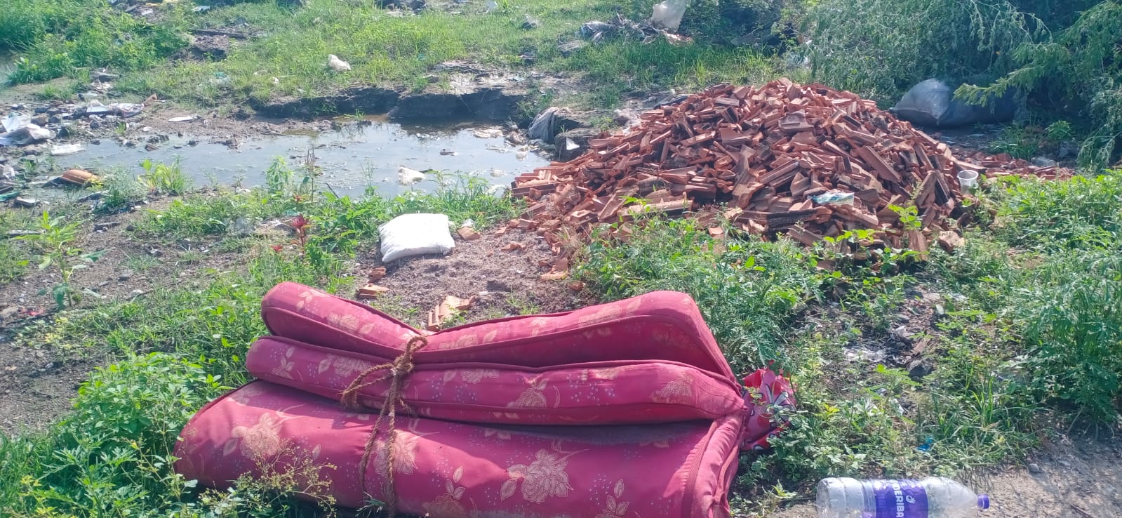 விருதுநகர் மாவட்டம் சிவகாசி அருகே உள்ள வெம்பக்கோட்டை ஊராட்சி ஒன்றியத்தைச் சேர்ந்தது கணஞ்சாம்பட்டி கிராமம் இக்கிரமத்தில் உள்ள கண்மாய் பகுதியில் கட்டிட கழிவுகள் மற்றும் வீட்டில் பயன்படுத்தப்பட்ட மக்காத பொருட்கள் கொட்டப்பட்டு வருகின்றன.