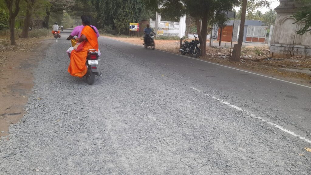 இந்த கற்கள் கொட்டப்பட்டுள்ள சாலைகளில் வாகனங்கள் செல்லும்போது ஜல்லி கற்கள் சிதறி செல்வதால் அருகில் செல்லும் பொதுமக்கள் மற்றும் குடியிருப்பு பகுதிகளில் இருப்பவர்களுக்கு விபத்து ஏற்பட்டு உயிர் சேதம் ஏற்படும் அபாயம் இருப்பதாக கூறுகின்றனர். நெடுஞ்சாலை துறையினர் உடனடியாக சாலையில் பள்ளங்களில் கொட்டப்பட்டுள்ள ஜல்லி கற்களை சரி செய்து சாலைகளை சீரமைக்க நடவடிக்கை எடுக்க வேண்டும் என கோரிக்கை விடுத்துள்ளனர். கடந்த இரண்டு நாட்களாக பல இடங்களில் சாலைகளில் சிதறி கிடக்கும் ஜல்லி கற்களால் பொதுமக்கள் பல்வேறு சிரமங்களுக்கு ஆளாகி வருவதாக வேதனை தெரிவிக்கின்றனர். நெடுஞ்சாலை துறையின் அலட்சியத்தால் விபத்து ஏற்படும் அபாயம் இருப்பதாக புகார் தெரிவித்துள்ளனர்.
