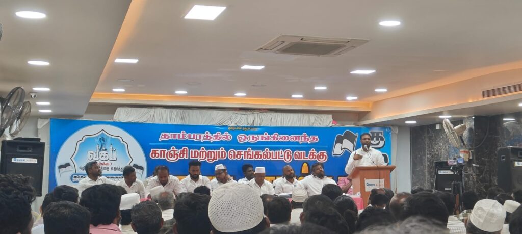 தாம்பரத்தில் தமிழ்நாடு முஸ்லிம் முன்னேற்ற கழகம் காஞ்சிபுரம்-செங்கல்பட்டு மாவட்ட நிர்வாகிகள் கூட்டம் மனிதநேய மக்கள் கட்சி துணைப்பொது செயலாளர் யாக்கூப் தலைமையில் நடைபெற்றது,