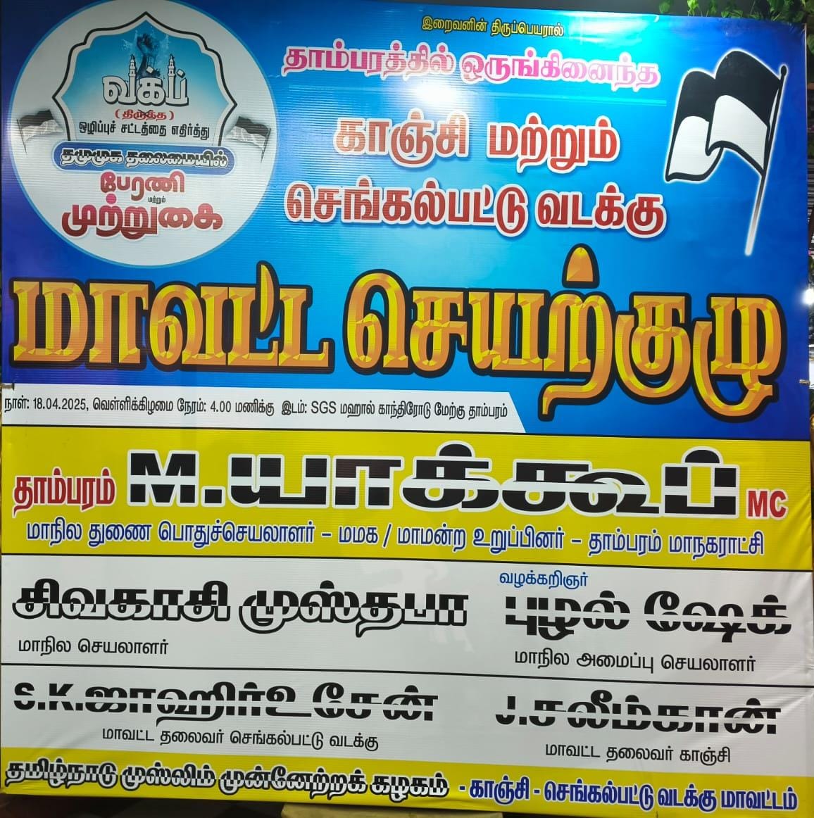 இதில் தமிழ்நாடு முஸ்லிம் முன்னேற்ற கழகம் சார்பில் வக்ஃபு திருத்த சட்டத்தை திரும்பப்பெற வலியுறுத்தி 22ம் தேதி சென்னை ரிசர்வ் வங்கி முற்றுகை போராட்டத்தில் ஆயிரக்கணக்கானவர்கள் பங்கேற்க வேண்டும் என தீர்மானம் நிறைவேற்றப்பட்டது.