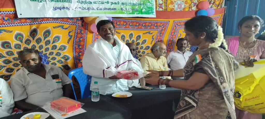 செங்கல்பட்டு மாவட்டம் முடிச்சூர் பகுதி தெற்கு லட்சுமி நகர் குடியிருப்பு பகுதியில், விடியல் தெற்கு லட்சுமி நகர் குடியிருப்போர் பொது நல சங்கம் துவக்கப்பட்டு சங்கத்தின் இரண்டாம் மற்றும் 79வது சுதந்திர தின விழா விடியல் தெற்கு லட்சுமி நகர் சங்கத்தின் சட்ட ஆலோசகர் சீனிவாசன் தலைமையில் நடைபெற்றது.