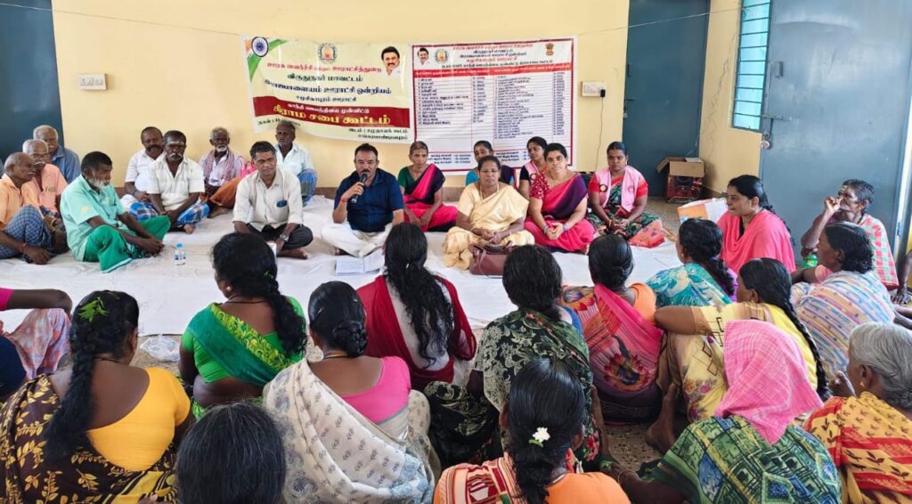 இந்த கிராம சபை கூட்டத்தில் அடிப்படை வசதி சாலை வசதி உள்ளிட்ட பல்வேறு குறித்து தீர்மாணம் நிறைவேற்றப்பட்டது. குறிப்பாக தமிழக அறிவித்துள்ள தெருக்களில் ஜாதிப் பெயர்கள் இருக்க கூடாது என அறிவித்துள்ளது. அதன் அடிப்படையில் ஜாதிப் பெயர்கள் உள்ள தெருக்கள் பெயர்களை அகற்றுவது குறித்து தீர்மானங்கள் நிறைவேற்றப்பட்டுள்ளது.