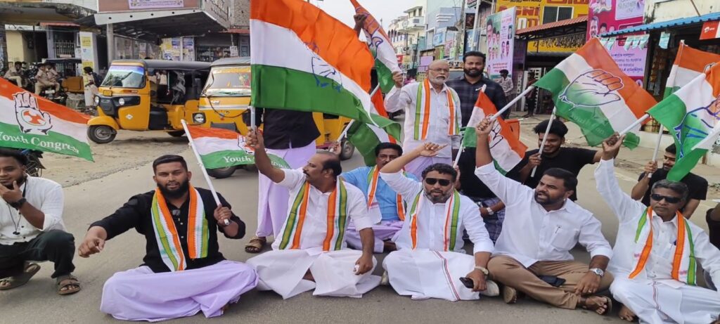 அவர்களை தடுத்து நிறுத்திய டெல்லி காவல்துறை, மக்களவை எதிர்க்கட்சித் தலைவர் ராகுல் காந்தி உள்ளிட்ட எம்.பி.க்களை கைது செய்தனர். இந்த நிலையில் ராகுல் காந்தி உள்ளிட்டவர்களின் கைதை கண்டித்து நாகூரில் காங்கிரஸ் கட்சியினர் சாலை மறியல் போராட்டத்தில் ஈடுப்பட்டனர். மாவட்டத் தலைவர் அமிர்தராஜா தலைமையில் நடைப்பெற்ற போராட்டத்தில் இந்திய தேர்தல் ஆணையத்தை கண்டித்தும், மத்திய மோடி அரசை கண்டித்தும் , ராகுல் காந்தியை விடுதலை செய்ய வலியுறுத்தியும் கோஷங்களை எழுப்பினர்.