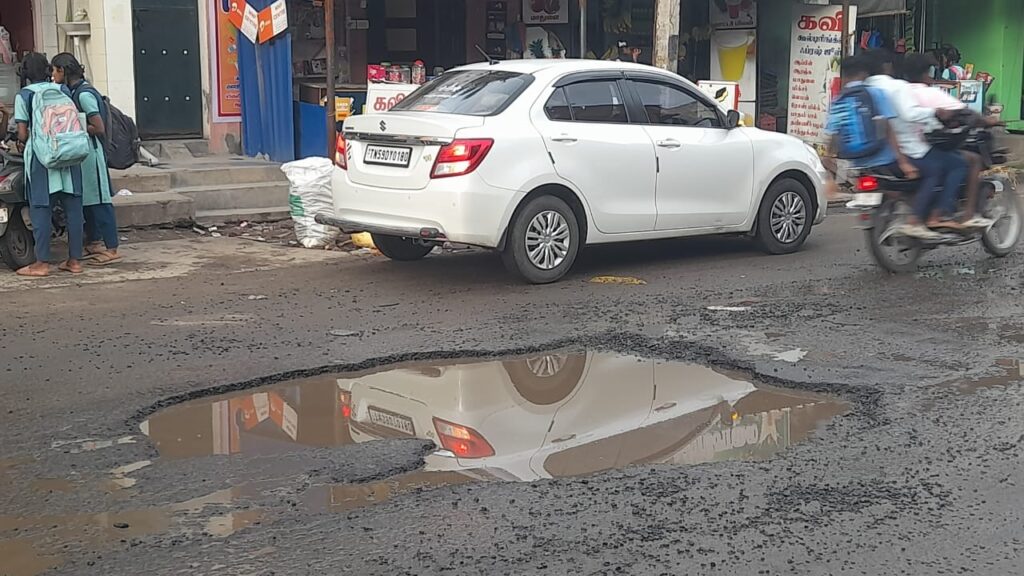 மதுரை மாவட்டம் சோழவந்தான் அரசு பெண்கள் மேல்நிலைப் பள்ளி அருகில் பேருந்து நிறுத்தப் பகுதியில் தொடர் மழை காரணமாக சாலையின் நடுவே முழங்கால் அளவு பள்ளம் ஏற்பட்டு தண்ணீர் தேங்கி நிற்கிறது சுமார் 1500 க்கும் மேற்பட்ட மாணவிகள் படிக்கும் பள்ளி மற்றும் அருகில் வைகை ஆற்று மேம்பாலம் மற்றும் முக்கியமான ஆன்மீக தலங்கள் உள்ளிட்ட பல்வேறு பொதுமக்கள் ஆயிரக்கணக்கில் கூடும் இடமான சாலையின் நடுவில் ஏற்பட்டுள்ள பள்ளத்தை நெடுஞ்சாலை துறை அதிகாரிகள் கண்டுகொள்ளாததால் உயிர் சேதம் ஏற்பட வாய்ப்பு இருப்பதாக பொதுமக்கள் மற்றும் மாணவிகள் பெற்றோர்கள் அச்சம் தெரிவிக்கின்றனர்.