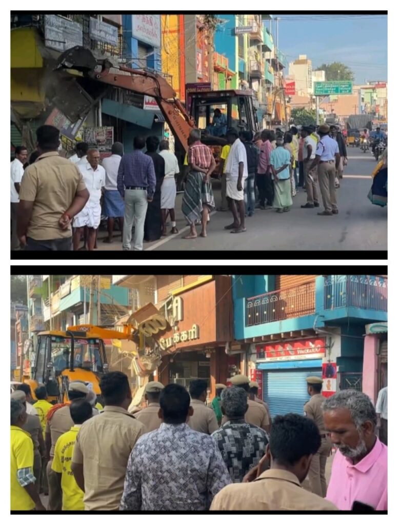 இந்நிலையில் இன்று உசிலம்பட்டியின் நகர் பகுதியில் உள்ள ஆயிரக்கணக்கான கடைகள், வணிக வளாகத்தின் முன்பு இருந்த ஆக்கிரமிப்புகளை நெடுஞ்சாலைத்துறை உதவி கோட்ட பொறியாளர் சீதாராமன், உசிலம்பட்டி உதவி ஆட்சியர் உட்கர்ஷ்குமார் தலைமையிலான அதிகாரிகள் உசிலம்பட்டி டிஎஸ்பி சந்திரசேகரன் தலைமையிலான பலத்த போலீஸ் பாதுகாப்புடன் ஆக்கிரமிப்புகளை அகற்றினர்.,