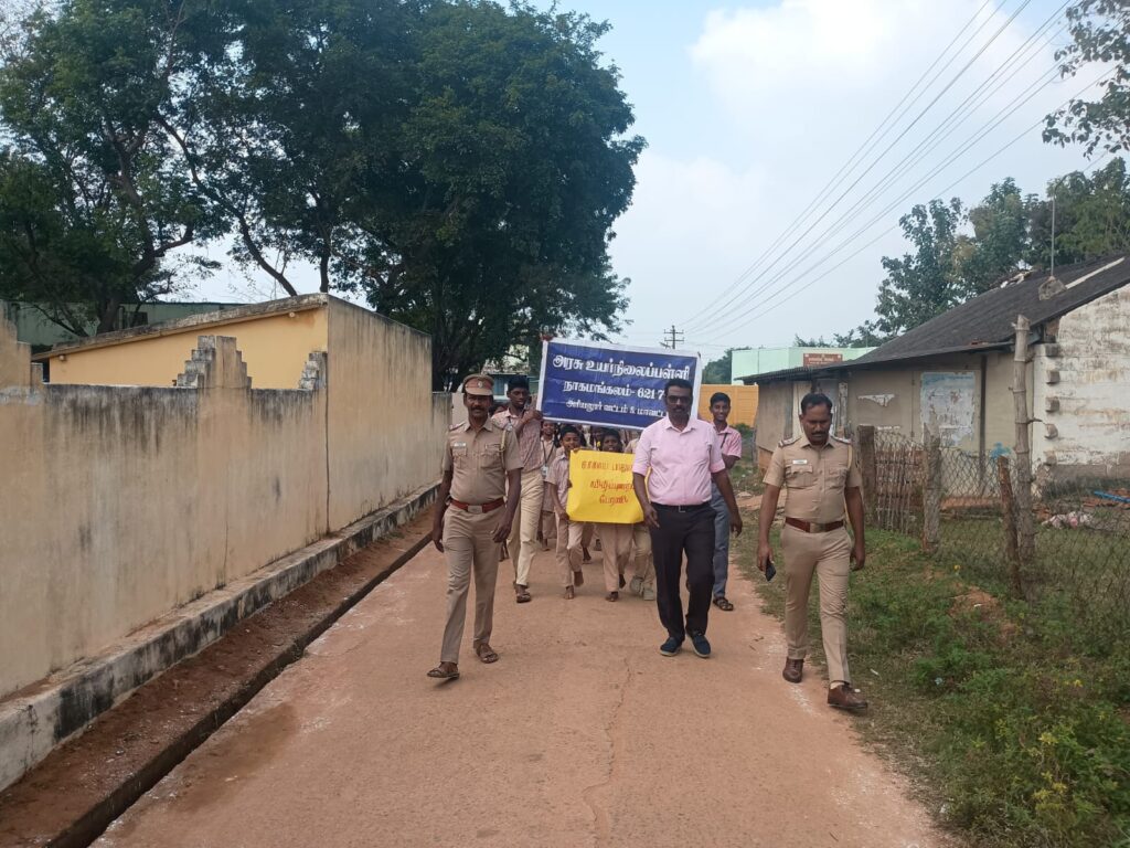 சாலை பாதுகாப்பு வார விழாவை முன்னிட்டு அரியலூர் மாவட்டம், நாகமங்கலம் அரசு உயர்நிலைப் பள்ளியில் சாலை பாதுகாப்பு விழிப்புணர்வு தொடர்பான பல்வேறு நிகழ்ச்சிகள் பள்ளியின் சாலை பாதுகாப்பு மன்றம் சார்பில் நடைபெற்றன.