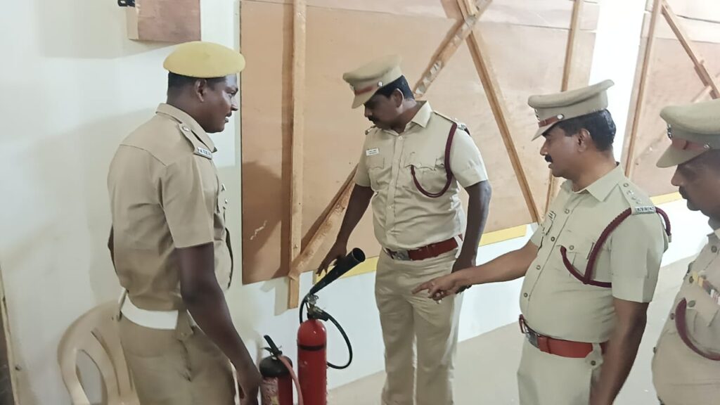 மாவட்ட தீயணைப்பு மற்றும் தடுப்பு அலுவலர் வெங்கட் ரமணன், மாவட்ட உதவி அலுவலர் திருமுருகன் தலைமையில் 20 அலுவலர்கள் வாக்கு எண்ணிக்கை இயந்திரம் வைக்கப்பட்டுள்ள பாதுகாப்பு அறைக்கு இரண்டு மணி நேரத்திற்கு ஒரு முறை சுழற்சி முறையில் சென்று ஆய்வு செய்ய வேண்டும் அதனை பதிவு செய்யவும் அறிவுறுத்தப்பட்டுள்ளது.