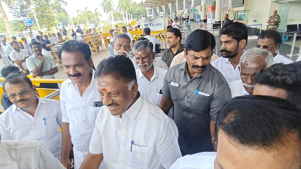 தேனி செல்வதற்காக சென்னையிலிருந்து விமானம் மூலம் மதுரை விமான நிலையம் வந்த முன்னாள் முதல்வர் ஓபிஎஸ் செய்தியாளர்கள் கேட்ட கேள்விக்கு பதிலளித்தார்.