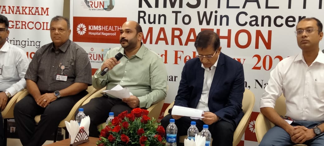 குமரி மாவட்டம் மக்கள் மத்தியில், குறிப்பாக கடலோர பகுதிகளில் வசிக்கும் மக்கள் மத்தியில் புற்றுநோய் பற்றிய விழிப்புணர்வு ஏற்படுத்தும் வகையில், எதிர் வரும் (பிப்ரவரி-23)நாள் நடந்த இருக்கும் மராத்தான் விழிப்புணர்வு ஏற்படுத்த”புற்றுநோயை வெல்ல ஓடு” என்ற நிகழ்வை, நாகர்கோவில் அண்ணா விளையாட்டில் நடக்க இருப்பது குறித்து, கிம்ஸ் ஹெல்த் குழுமத்தின் தலைவர் மற்றும் நிர்வாக இயக்குநர்