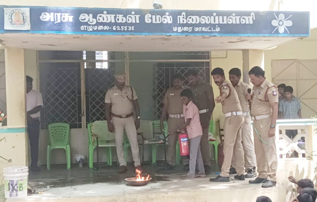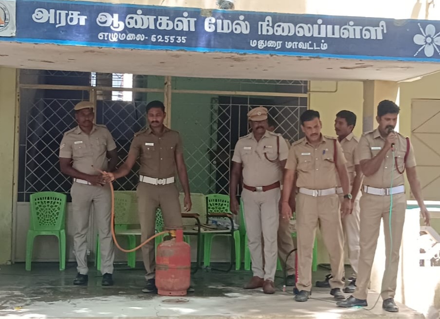 உசிலம்பட்டி தீயணைப்பு மற்றும் மீட்பு பணிகள் நிலையம் இணைந்து மாணவர்களுக்கு தீ தடுப்பு மற்றும் உயிர் பாதுகாப்பு பயிற்சி சிறப்பு விழிப்புணர்வு நிகழ்ச்சி தலைமை ஆசிரியர் கிறிஸ்டி செலினாள் பாய் முன்னிலையில் நடைபெற்றது.