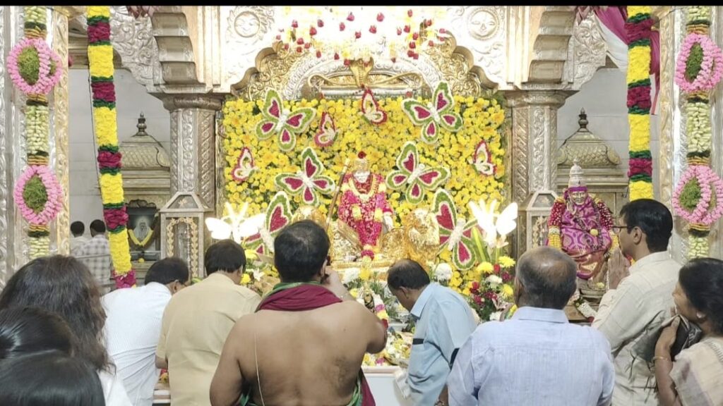 தொடர்ந்து காலை முதல் மாலை வரை சிறப்பு பூஜைகள் நடைபெற்றது அதனைத் தொடர்ந்து கோவில் வளாகத்தில் சாய்பாபாவிற்கு தங்க தேரை இழுத்து வலம் வந்தனர்.